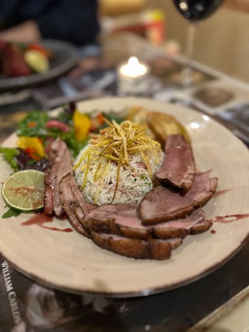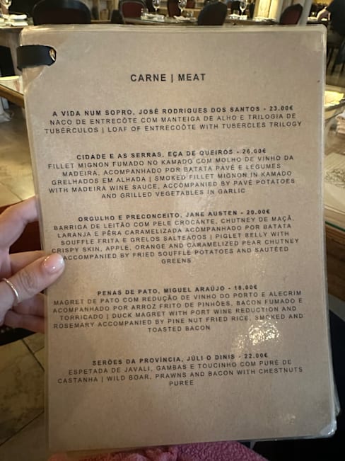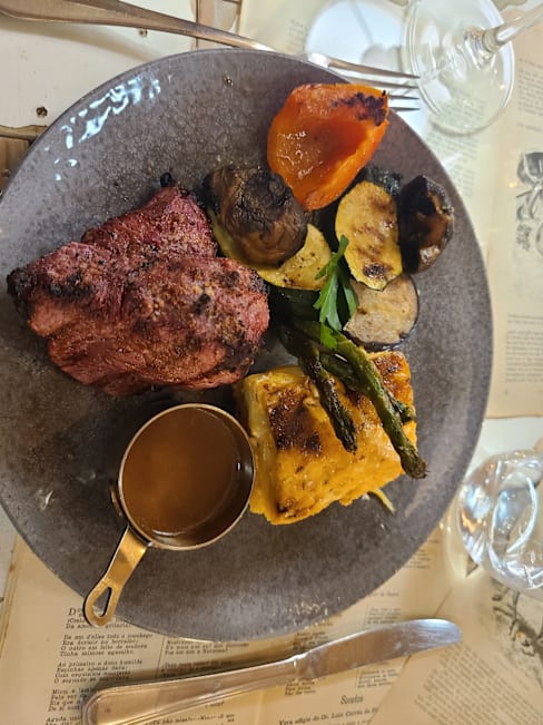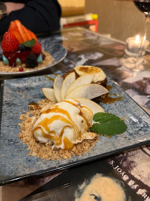 6.5/10This was somewhat disappointing. While the atmosphere was pleasant and the mushroom tart appetizers were delicious, the cod fish and filet mignon were rather average with the fish being too salty and the steak being a bit overcooked. Then during dinner one of the servers was spraying cleaner on tables nearby which filled the air with a very unpleasant odor. Also the limited Wines By The Glass is odd in portugal.