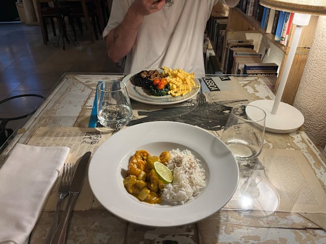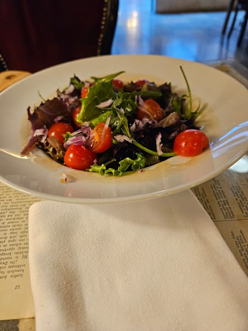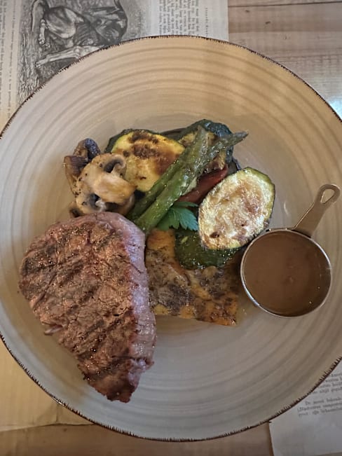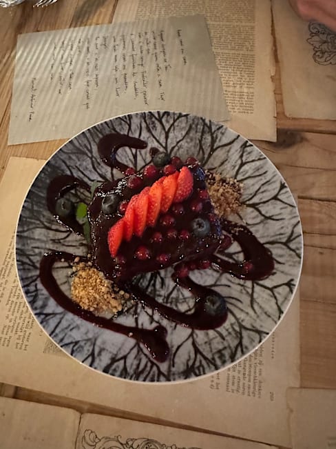9/10The interior of the restaurant is really cool with all the books, very atmospheric. The food was surprisingly tasty. The service was attentively present in the background.