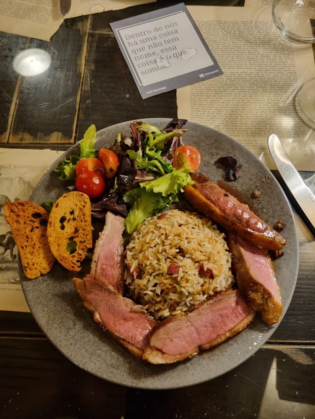 9.5/10What a delight to dine in a room full of books! We both had vegetarian dishes, and they were excellent. The feijoada was quite tasty, and could easily have fed two people. The servers were wonderfully kind and made us feel welcome. Would definitely recommend.