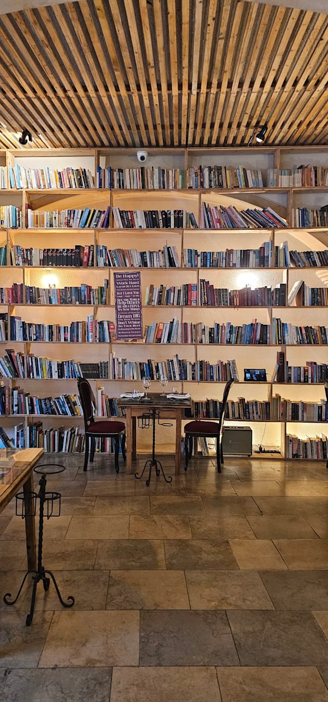 10/10Great setting in a renovated convent surrounded by books, great service with a smile and a joke and food to die for….”cheesecake was the best food I ever had”, said my wife. Well worth the visit!