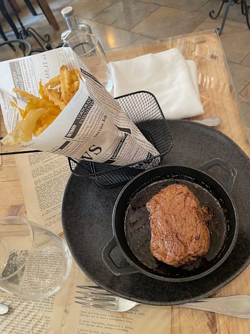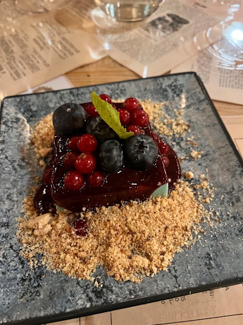 7/10It’s a beautiful setting but the food was very hit and miss. The mushroom pie was excellent, the salmon tartare (though confusing due to so many conflicting flavours) was tasty, but then things rapidly went downhill. The wild boar was tough as leather, and the salted cod dish was 50% canned olives and therefore inedible. The waiter confirmed from the chef that it wasn’t supposed to be like that; we got an apology but no refund on the dish. Staff were pleasant and friendly, though, and the wine selection was good.