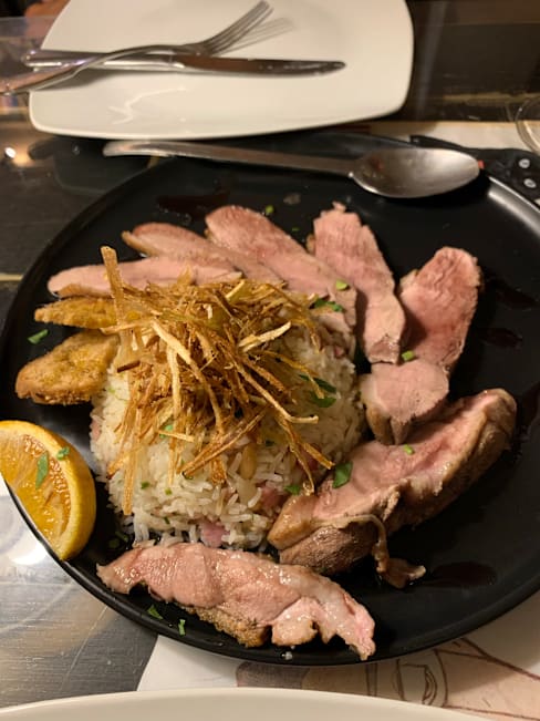 10/10Atmosphere, food and service are unbeatable here. We had great cheese on board starter and duck on rice as a main course, red Sangria as a drink. Service was nice and timely. Ambient music selection (jazz of Chad Baker and like) add romantic touch to perfectly cooked and assembled dishes. For desert we asked for melon (outside of the menu), and guys provided it no time. We travel thru Portugal for 8 days by now, had great restaurant experience in Lisboa, Algarve, Evora etc., but this place has bitten all great restaurants we had before!