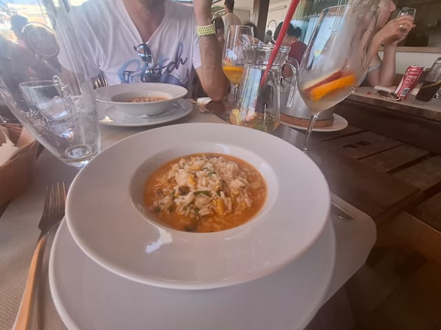 4/10THIS PLACE IS A TOURIST TRAP and would not recommend. Service was poor and servers were very pushy serving additional extra chargeable items like tap water, bread, butter, cheese spread and olives. Menu stated a specific fish and mainly served a big pot of rice with tiny fragments of the mentioned fish for 60 Eur. Unprofessional and poor Management refused to acknowledge customer service.