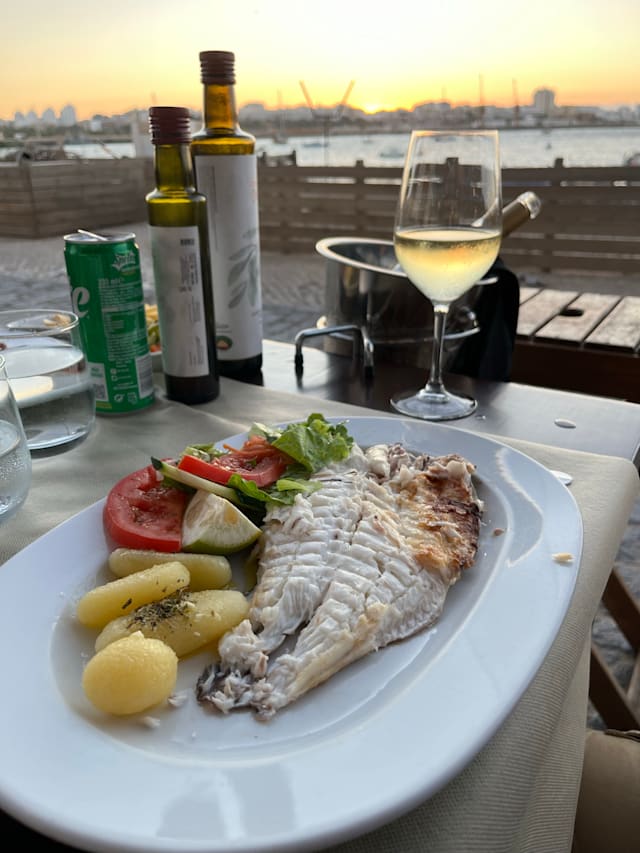 10/10Beautiful fresh fish on the quayside watching the sun go down