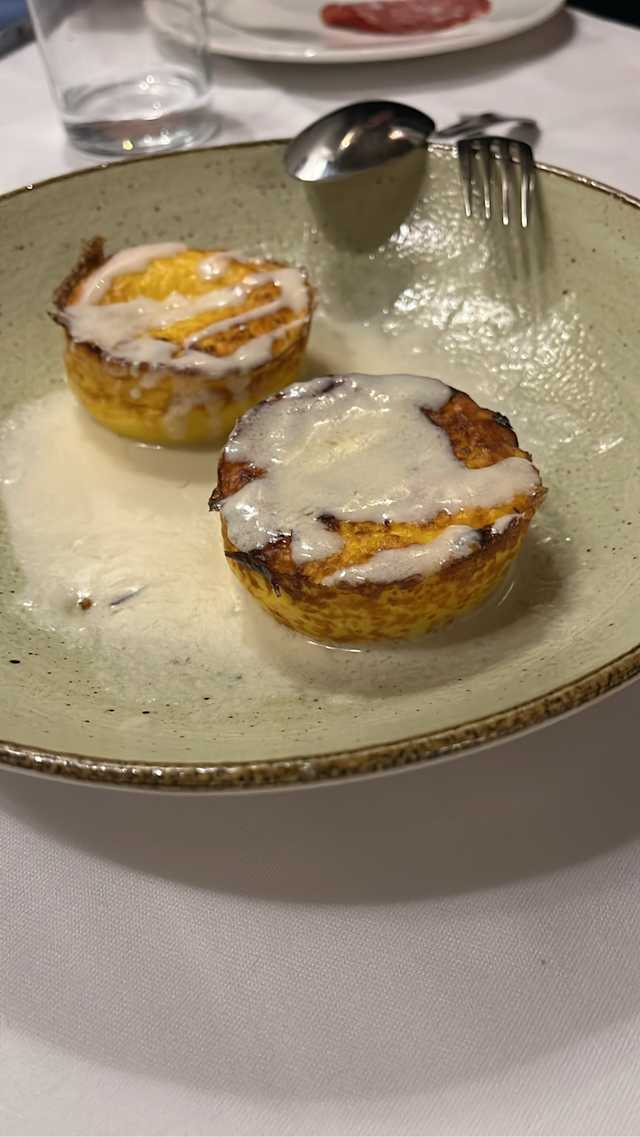 Flan di zucchine e parmigiano con fonduta e chips di topinambur