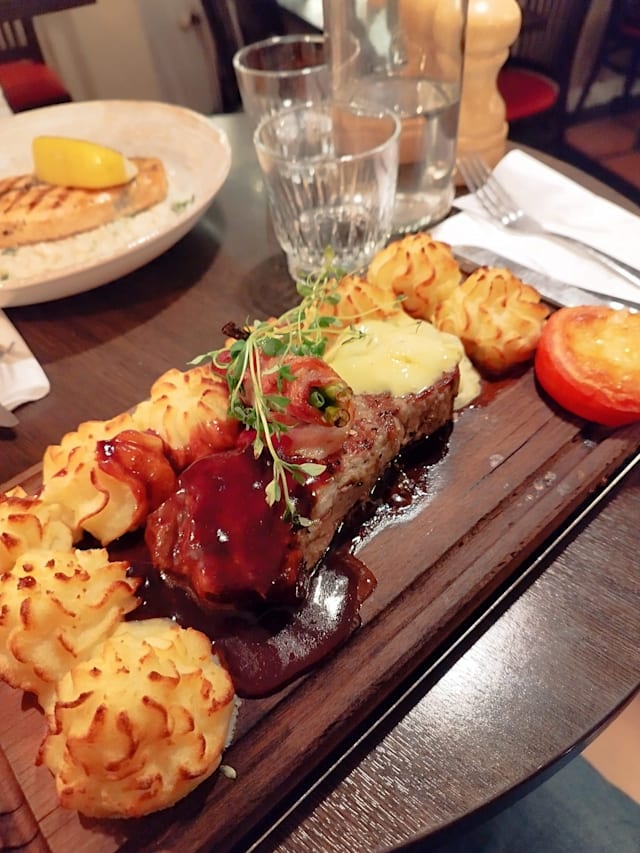 7/10Not so good salmon, the meatballs were very compact. The waiter somewhat not interested and he felt a bit tired