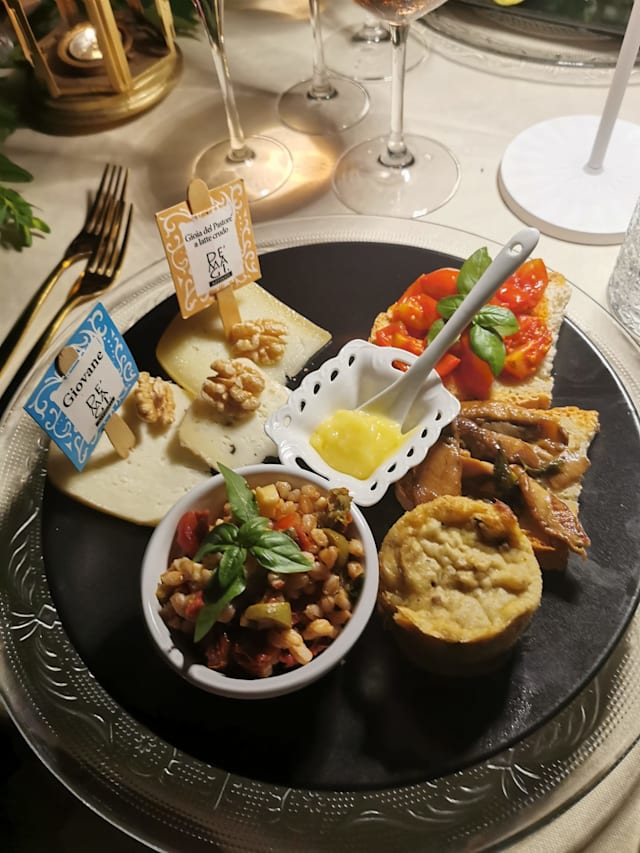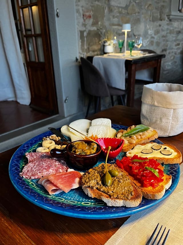 4 bruschette con paté toscano - fagioli cannellini - pomodorini datterini - pecorino e tartufo