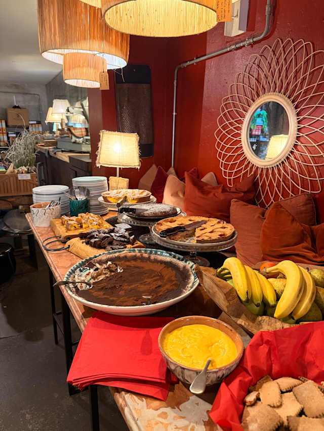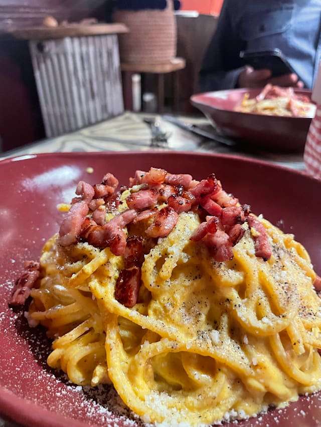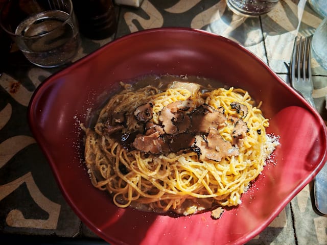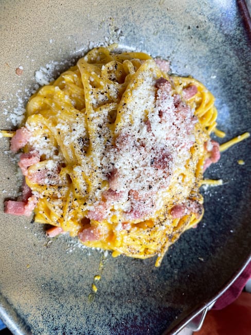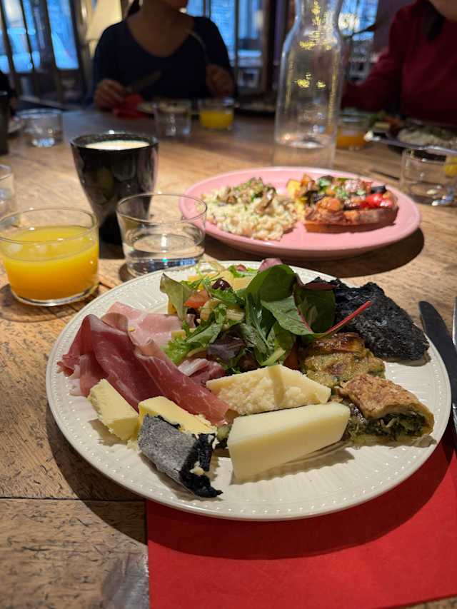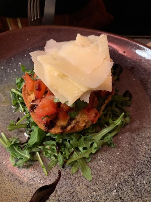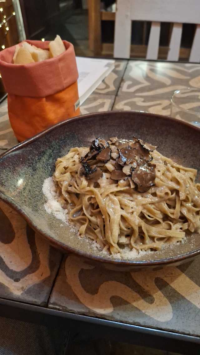 10/10+1Excellent authentic Italian good in a fancy store selling linens and home furnishings. No sir conditioning. Lucky got us it was 77f or 26c. Good was very reasonably priced with the discount. Came quickly. Good service but a little slow at the end. I had the digger tu carbonara which was fantastic. Excellent bread. My partner had the excellent eggplant parmigiana. I had the mimosa cake for dessert. It was huge. Emphytéotique to feed two people. Excellent Sangiovese wine 😀for 30 euros. The water was great but remember you can ask for sparkling water also for the table in a carafe. Beautiful decor which featured things they sell in the store. The party next to us demolished their tiramisu. So all in all a fantastic find for the fork diners. Run to this place for the discount. Highly recommended. Also dip your wonder it’s bread in evo extra virgin olive oil and pepper and a little salt! Absolutely the highlight if my lunch here.
