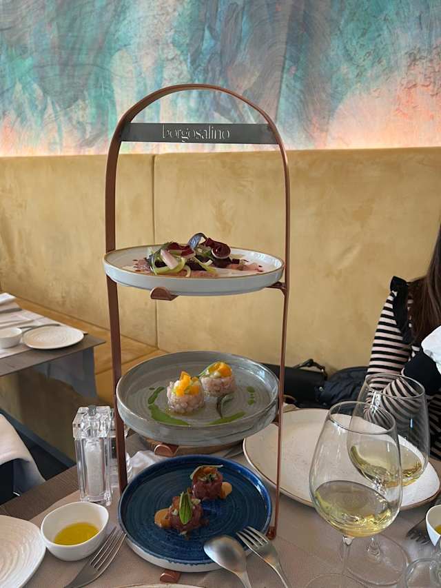 10/10This restaurant is a treasure, providing an interesting menu, by serving creative, yet seemingly simple, combinations of ingredients to enhance the flavours of fresh seafood. My grilled amberjack was served with a slightly sweet fennel orange sauce, topped with chicory. The chocolate cake sat in a warm chocolate sauce, topped with a banana mousse with bits of dried banana. The wine list compliments the restaurant’s seafood focus. The service was attentive and the pacing of the meal was perfect. It is fairly rare as a single woman that I experience the level of service as I did at Borgo Salino. Thank you.