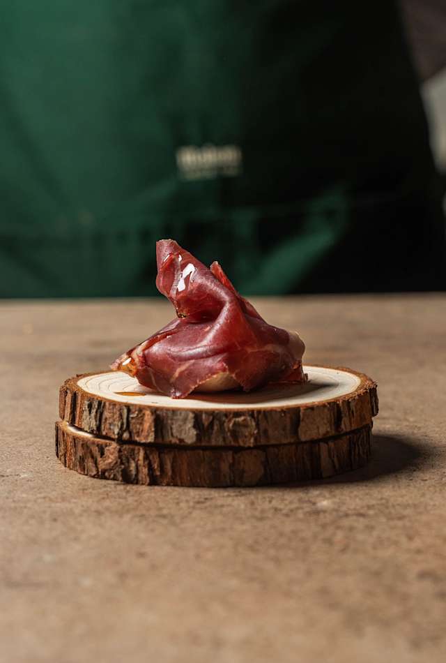 - Cecina de lleó, pa airbag, oli verge i salmorejo cremós.