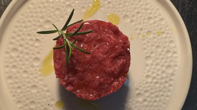 220g filetto di manzo su cremosa base di senape, burro, pepe verde in grani