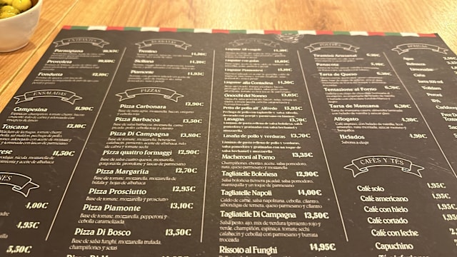 If you plan to eat at Bosque de Piamonte, the average price should be around €21. The average price is calculated based on appetizer/entrée or entrée/dessert, excluding drinks. Prices have been provided by the restaurant.