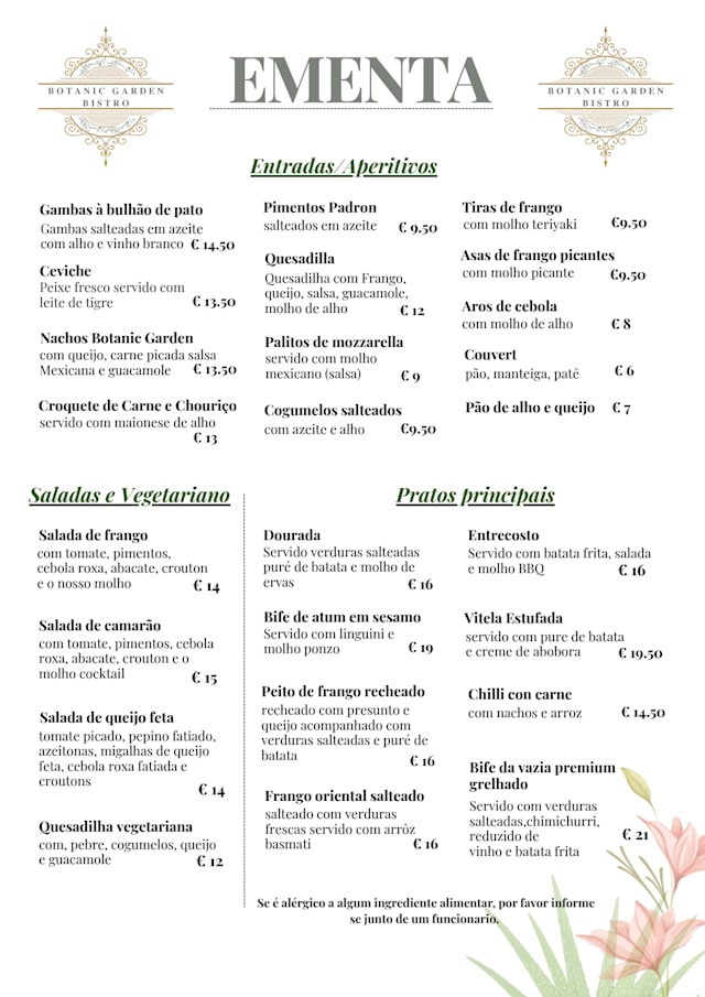 6/10The food at the Botanic Garden was good, but I waited for an hour to receive the appetizer (which was bread and olives). The glass of white wine was warm. The problem was that no tables were being served. I felt sorry for the waiters, as they were embarrassed, but unfortunately, we just had to wait. Probably the kitchen was too crowded. It might have been better to check the kitchen situation before taking new reservation.