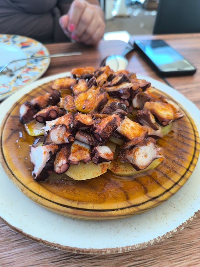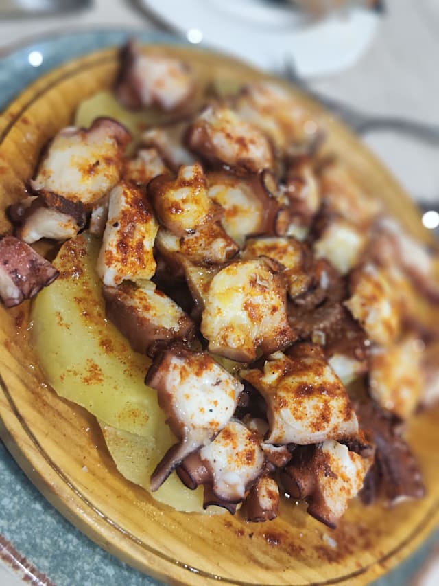 Pulpo a la gallega en cachelo de patatas al pimentón