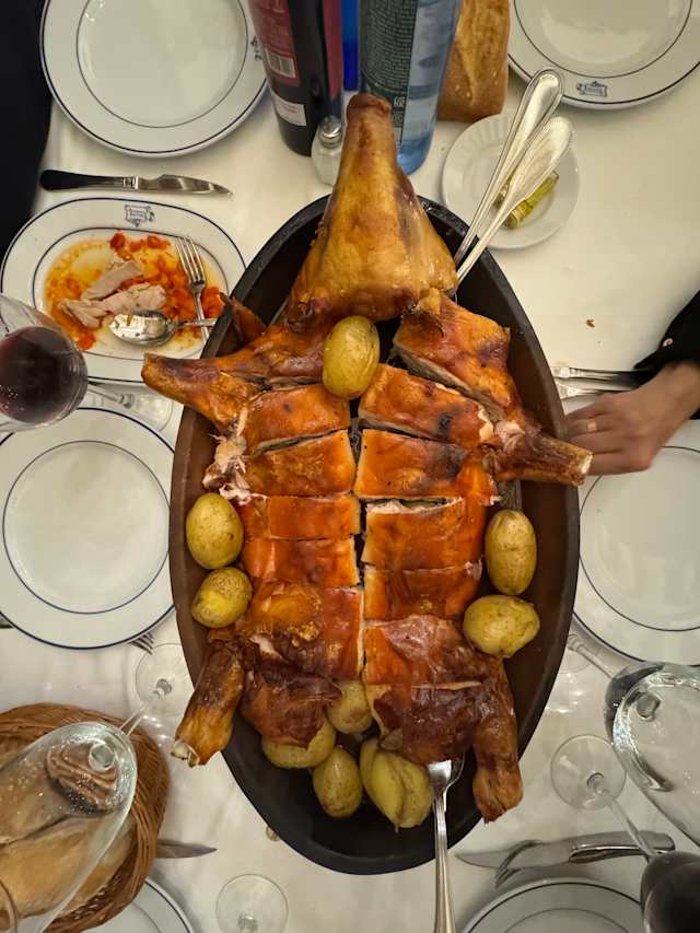 2/10What a tourist trap! Terrible all around. Food is below average for European standards. Service was absent - I was not even asked how I would like my meat prepared. World famous suckling pig was very mediocre. This please was superb 22 years ago when I visited it. Now it’s a waist of your time and money.