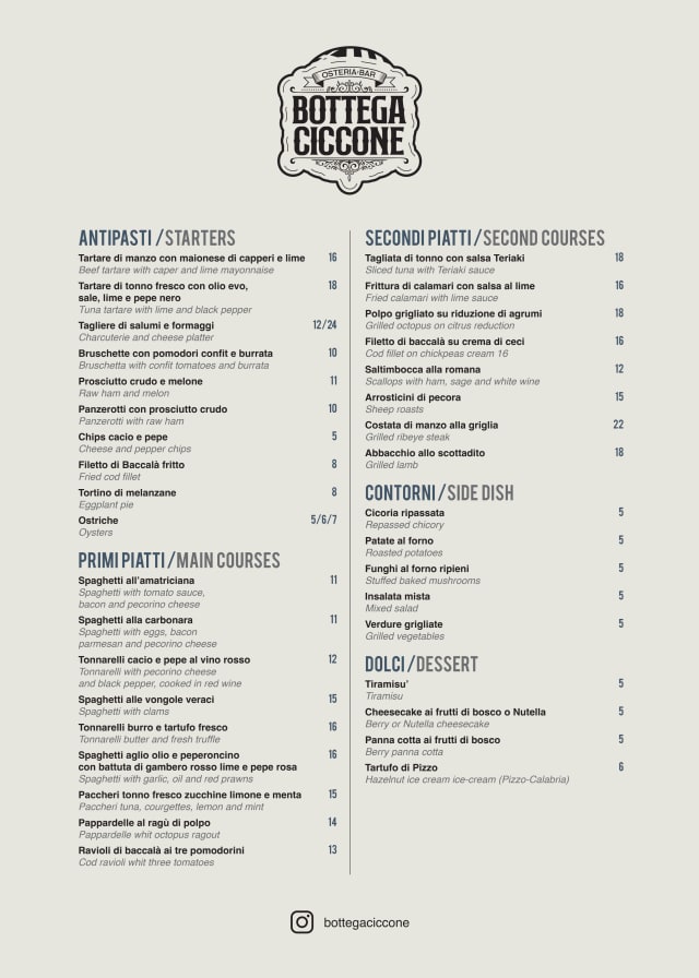 10/10We had an absolute wonderful time at Bottega Ciccone . We ordered antipasto plate, artichoke Romano, a couple of pastas, wine and desserts and everything was spectacular. Service was great and we just had an overall great evening. I will absolutely come visit again during my stay here in Rome. Check it out. You won't be disappointed.