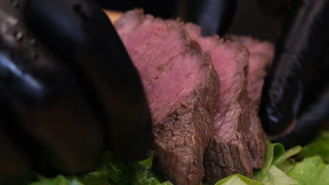 Battuta di scottona con crema al tuorlo d’uovo e guanciale croccante