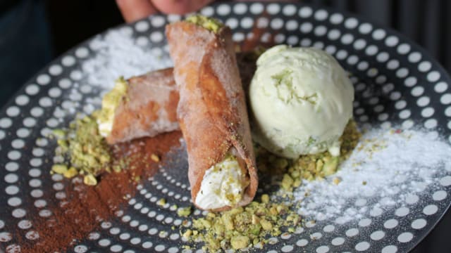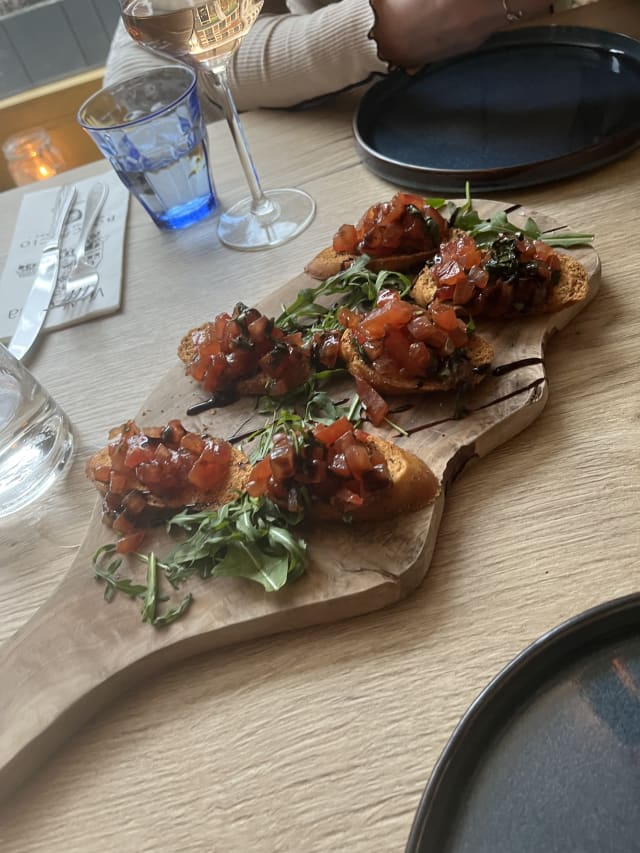 10/10What a great place to go to dinner too. We made reservations as we expected it to be busy on a Thursday night and it kinda was but the restaurant is set up nicely in a way that doesn't make it feel cramped at all. Food: Absolutely love it. If you like Italian food, and not just pizza but actual Italian food, this is a lovely place to go to. We had some pane as a first plate, lovely bruschetta with roasted paprika and burrata and the secondia piatti (or the main dish) was a goat cheese pasta for me and a duck breast tomato pasta for my partner. The pasta is fresh and so delicious. I forgot to take a picture cause I just wanted to eat it. Finished up with a cannoli for dessert (see picture) that was absolutely mouthwatering. the portion sizes are just right and the price is really decent. Also they have an amazing wine menu which I sadly couldn't try out due to being pregnant so I will come back for that later. Service: The staff is very friendly and helpful. They made me a virgin gin tonic and we're very helpful with figuring out which dishes were safe to eat. Atmosphere: We had a lovely table in the corner. As a neurodivergent person going to restaurants can be quite exhausting even though I love going for dinners and trying new foods. I asked if we could be seated in a corner and we had the most quiet corner in the restaurant. The lighting is soft and there is nice music which isn't loud at all. I could easily focus on my food and my conversation with my partner without distraction. The people closest to us weren't even close due to the nice wide setup of the restaurant. This was a great experience and we will definitely come back again.