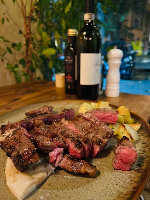 7/10Ordered a Fiorentina medium-well, it came pretty much blue. Sent it back to recook at least some pieces, came back rare. Same for my son’s tagliata, we ordered medium and came to the table rare.