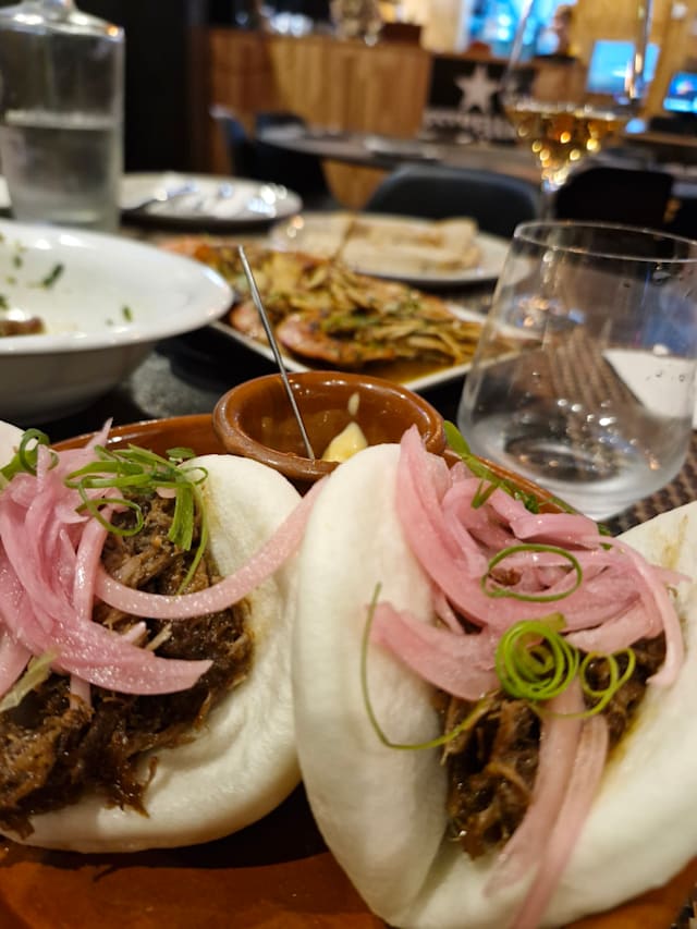 8/10The service and recommendations were very good - the gyosas were particularly good. The Portuguese sausage was great to watch, but a bit heavy and a bit salty. The prawns had a good sauce. The pork shank was great - so tender! The wine recommendation „ Rede“ was really good! Ambience - not so cosy, so not so encouraging to sit back with another bottle of wine….