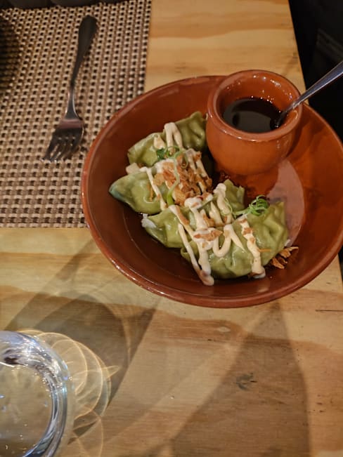 8/10The service and recommendations were very good - the gyosas were particularly good. The Portuguese sausage was great to watch, but a bit heavy and a bit salty. The prawns had a good sauce. The pork shank was great - so tender! The wine recommendation „ Rede“ was really good! Ambience - not so cosy, so not so encouraging to sit back with another bottle of wine….