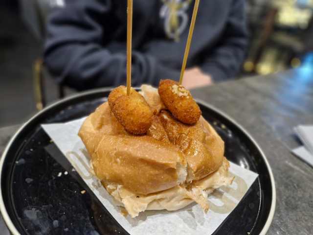 - hamburger di scottona,provola,prosciutto cotto e crocchè