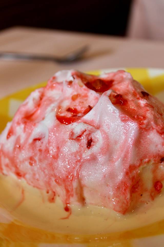 - Brioche perdue, caramel pralines roses et glace vanille