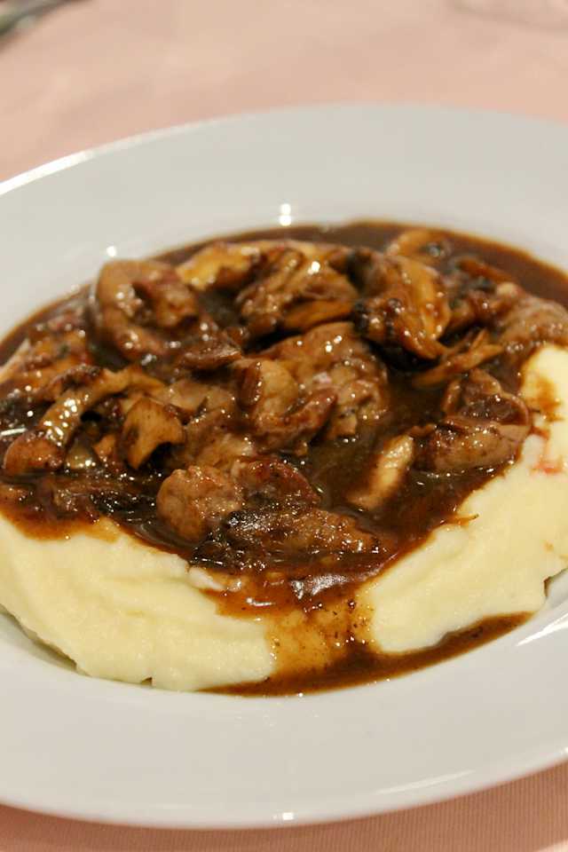 - Fricassée de rognons de veau au Madère et pleurotes, purée maison