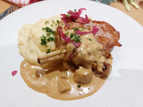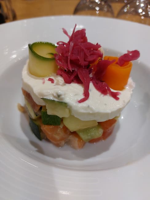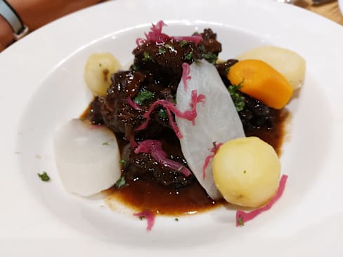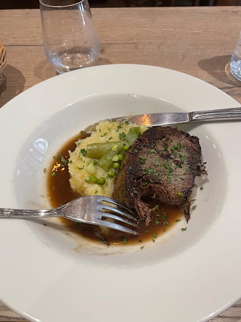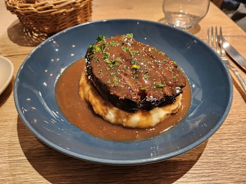 9.5/10Had the « Travers de porc de l’Aveyron » and it was delicious. Tender, sweet and balanced. Paired with a glass of red Bourgone for a quite pleasant meal. The restaurant is run by an enthusiatic team, very courteous and attentive.