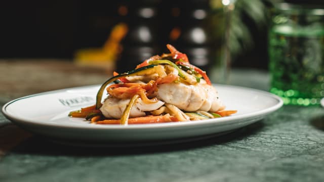 Juliana de legumes e molho "jus de peixe"