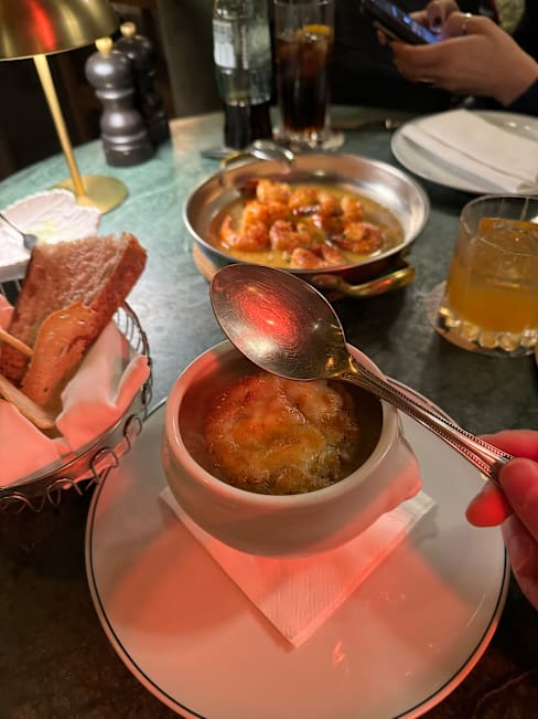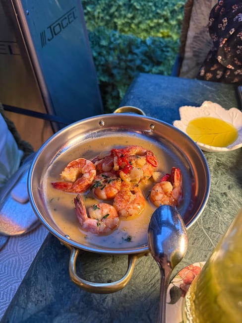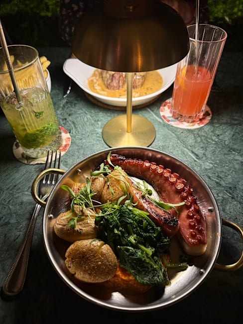 9/10We began with a fairly simple starter, with couvert and garlic prawn. The garlic prawns were delicious, the sauce was godly. But the portion was fairly small. For main dishes we ordered the steak Diane and the octopus. But portions were decent and they were delicious. The steak was perfectly on point with what we ordered and the Diane sauce was very good. Smooth, silky and tasty. The octopus was cooked to perfection (tender and juicy) and the romesco sauce worked very well in the dish. The sides for both dishes were good and decent portion. Fries for the steak. And oven roasted potatoes and sautéed kale for the octopus. As for deserts. It’s a mixed feeling. The tiramisu was absolutely divine. Creamy and tasty. As for the chocolate bomb, it just didn’t work for us at all. Not what we hoped for. To accompany the whole meal we had 3 different cocktails. The passion fruit Mojito, Pink sour and palomita. They were good. But the passion fruit Mojito stood out from the rest. Very nice.