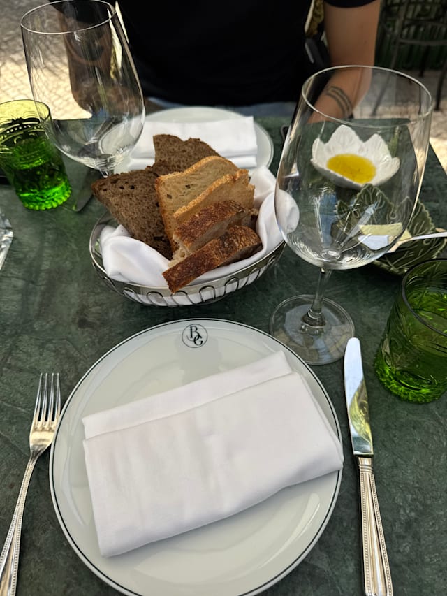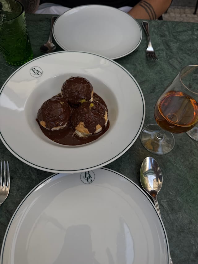 8/10Beautiful restaurant both inside and outside. Wait staff was very professional and friendly. Good cocktails and wine. Small portions for the price