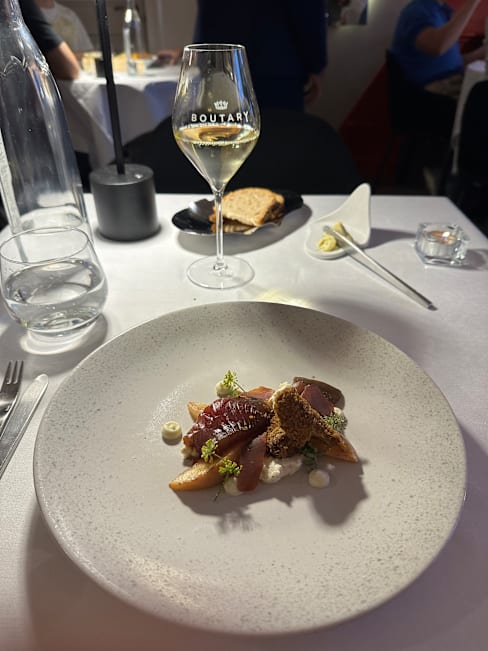 10/10We had a wonderful experience at Boutary. The staff provided excellent service — very attentive, professional, and friendly throughout the evening. They made us feel welcome and comfortable, and even added a special touch for our celebration. The atmosphere was elegant yet relaxed, and the dishes were creative and beautifully presented. Highly recommended for anyone looking for a memorable dining experience in Paris.