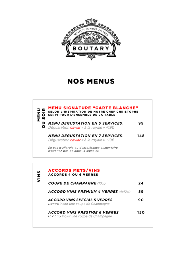 Dear Guest, We are so sorry to hear that dinner was not fully OK up to your expectations and we are even more sorry that we could not know about it before you have left the restaurant despite receiving a full service from our staff at the table in both English and Japanese. About the choices, we indeed only offer tasting menus as clearly stated on our website and mentioned in countless reviews online. If you are looking for “a la carte” choices, we are not the matching restaurant for sure 😉 and there’s not much we can do about it. We wish you a pleasant stay in Paris and will also contact you privately to apologise. Best regards, Frédéric and the whole team. Maison Boutary.