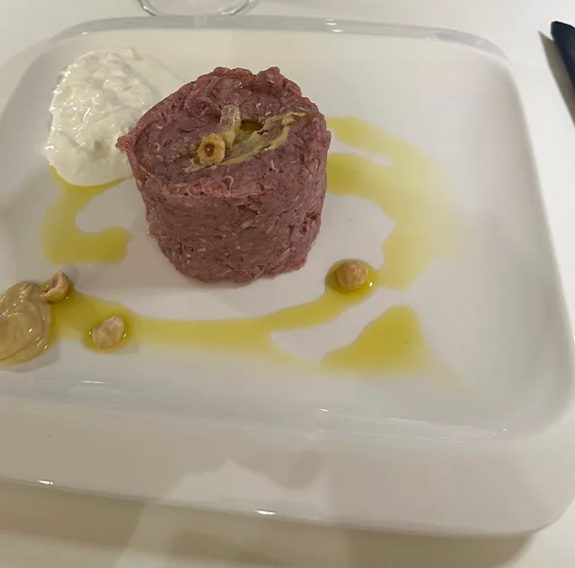 - Scottona, tuorle d'uovo, capperi, olive taggiasche, erba cipollina, sale, pepe, olio evo