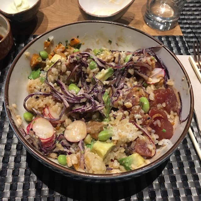 8.5/10Very tasty Poke and super nice service. Bit noisy because of arquitectural design of the restaurant.
