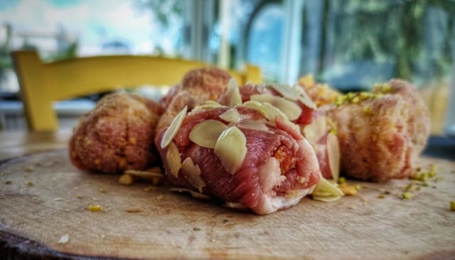 - Fettina di capocollo di maiale con ripieno (base trito di carne e mozzarella) varietà: mortadella e pistacchio caciocavallo e capocollo piccanti