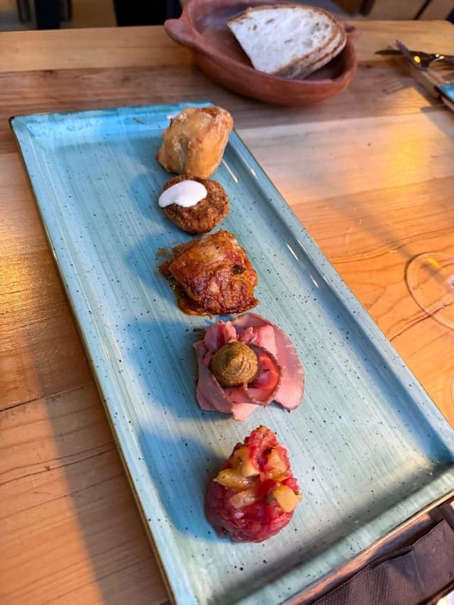 10/10Fantastic food, great atmosphere and extensive wine cellar. Our group had both the Full set menu with wine recommendations and without wine and selected our own choice from the wine cellar. Definitely recommend to eat here if you can get a table.
