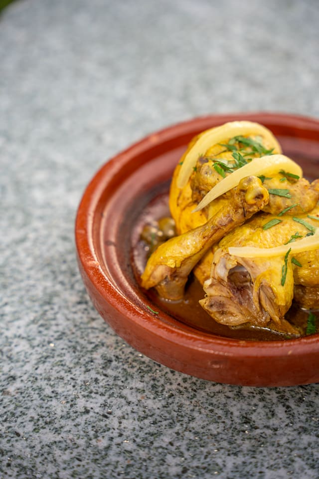 - Tajin di pollo, limone marocchino, zafferano e olive