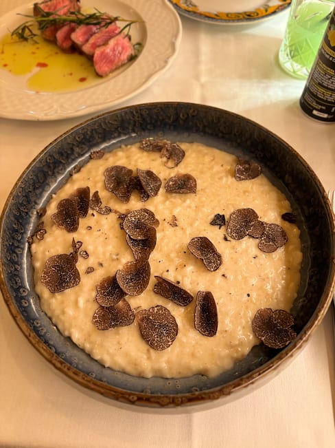 5.5/10First of all, a winelist with big names but no year whatsoever is not good. The first 5 wines we ordered were not available. The recomended wines were almost 100% over indicated budget. Finally we decided to order a pretty standard white wine, sommelier was obviously not happy. We did not even get to taste the wine when served and no cooler provided, Location is great with a very nice garden. Food not impressive at all. 4 mediocre slices of cheese at 22€? No explanation whats on the plate. Carbonara low temperature, sticky eggjoge and more raw than aldente. The location is nice but needs really more tender love and care. Now its a bit embarassing and by far off par with other Experiences we had in Florence. Really a shame because the place has a lot of potential.