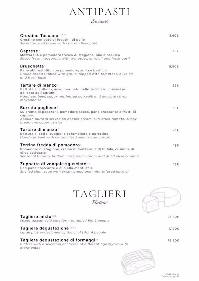 First of all, a winelist with big names but no year whatsoever is not good. The first 5 wines we ordered were not available. The recomended wines were almost 100% over indicated budget. Finally we decided to order a pretty standard white wine, sommelier was obviously not happy. We did not even get to taste the wine when served and no cooler provided, Location is great with a very nice garden. Food not impressive at all. 4 mediocre slices of cheese at 22€? No explanation whats on the plate. Carbonara low temperature, sticky eggjoge and more raw than aldente. The location is nice but needs really more tender love and care. Now its a bit embarassing and by far off par with other Experiences we had in Florence. Really a shame because the place has a lot of potential.