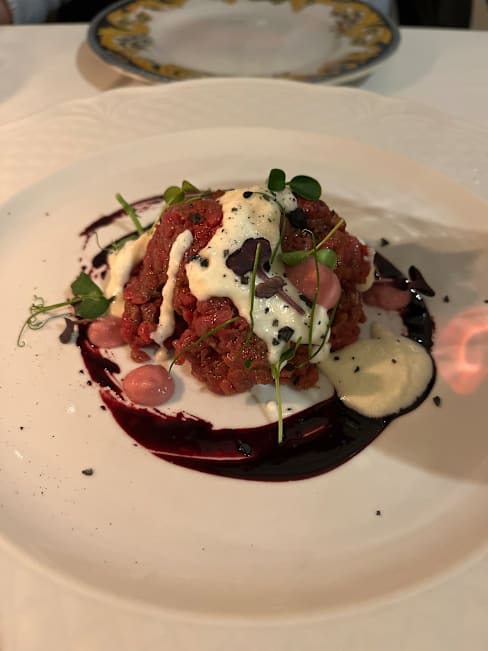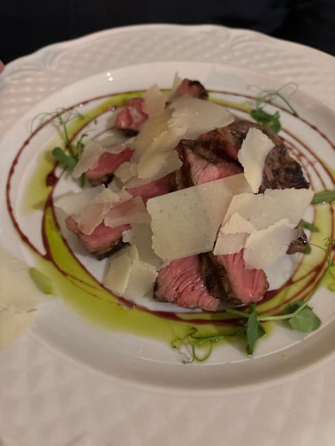 10/10We ordered the bistecca sashi, truffle pear dumplings, and rigatoni alla carbonara as the main. Beef tartare and gazpacho for starters. everything was so good.