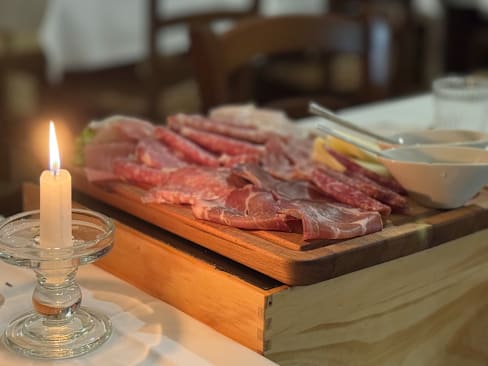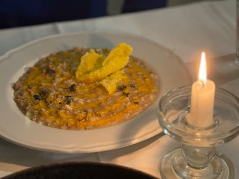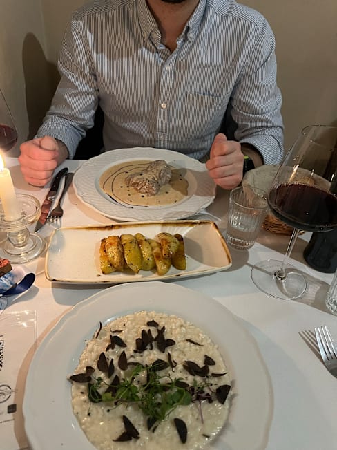 10/10This is our fourth day in Tuscany and we luckily picked this beautiful fine restaurant for dinner. The environment here is so artistic. Once seated, candles will be lit, creating a really charming atmosphere. The double appetizer platter is super generous. Besides the cold cuts directly supplied from the farm and several kinds of cheese, it also comes with honey and jam, presenting unique flavors and tasting delicious in every bite! For the main courses, we ordered the truffle steak and wild boar saffron risotto, both of which were extremely yummy. The risotto had a distinctive aroma, and the steak was plated like a work of art, with a circle of different dips around it, ranging from cream to purple sweet potato sauce and then to mustard sauce, making each bite a one-of-a-kind experience! The final dessert was a dark chocolate cake, which was fluffy and not overly sweet. All in all, I highly recommend this hidden gem of a restaurant. Every bite brings full surprises!