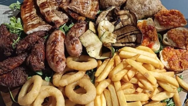 Pork rib, sausage, stick of fried chicken wings, meatballs, accompanied by chips*, onion rings, flavored bread and breadsticks