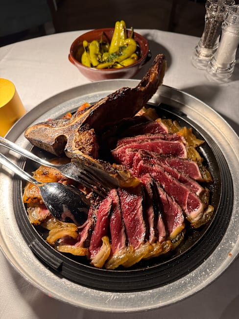 9/10+1The service (young maître guy) and the ambience made this experience top notch. Bison tartare represented a major fail though (tasteless). Reindeer, Quail and Grappa were exquisite. Egg-truffle, Angus, grilled veggies and wine were good. Desserts were decent. As a hint, consider to follow maître’s advice about starters and meatcuts. I will come again to focus just on a large Fiorentina cut with some grilled veggies, which I guess is the best thing to do here.