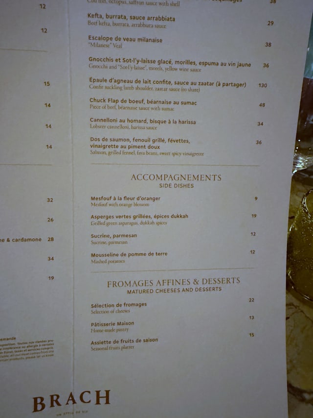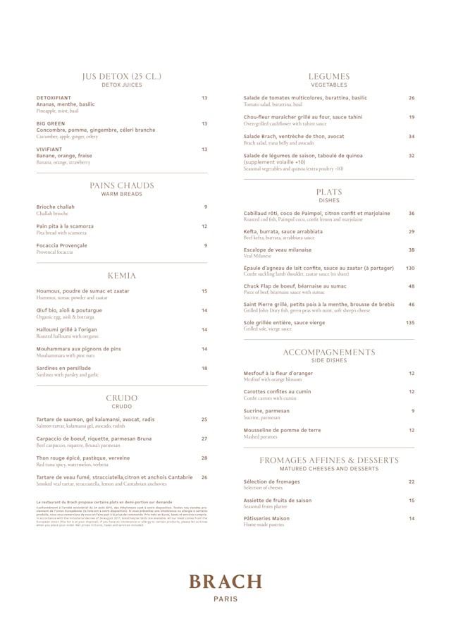 10/10The food at Brach is excellent. I took a couple of vegetarian friends for lunch and they were amazed at the quality and presentation of the food. This was my second visit and I will certainly be back. The staff and the beautiful ambience your experience even better.
