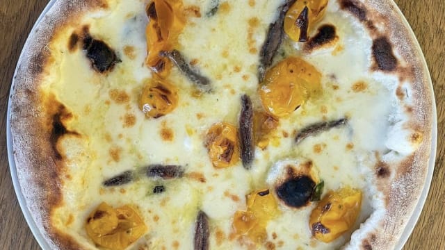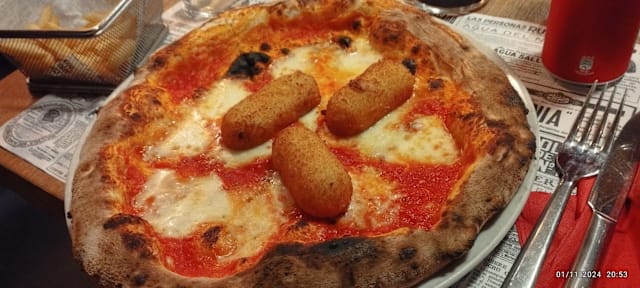 Prepariamo la nostra pizza napoletana con cura e passione. Impasto con lievito madre e 24 ore di lievitazione per ottenere la massima digeribilità.