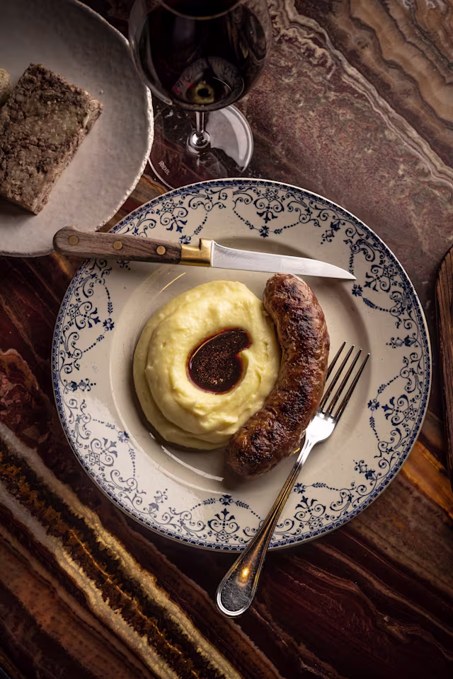 - Sauce au poivre et frites de pomme de terre (Façon Rossini, foie gras poêlé, sauce au vin rouge +8€)