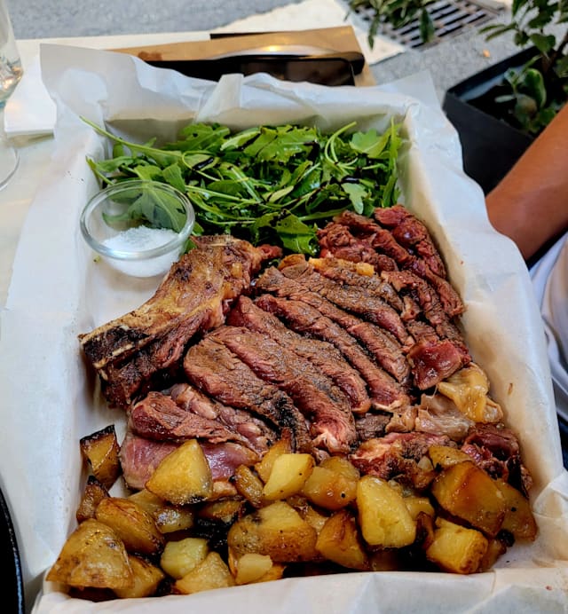 9/10Great service and warm atmosphere . Will go for the cote de boeuf next time over the mixed meat platter. Will return.