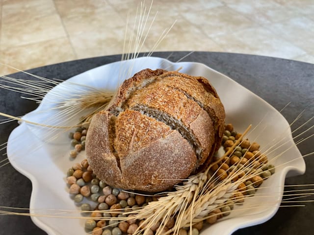 Fazzoletto di pasta al grano arso, ragù di capra, crema di broccoli, caprino